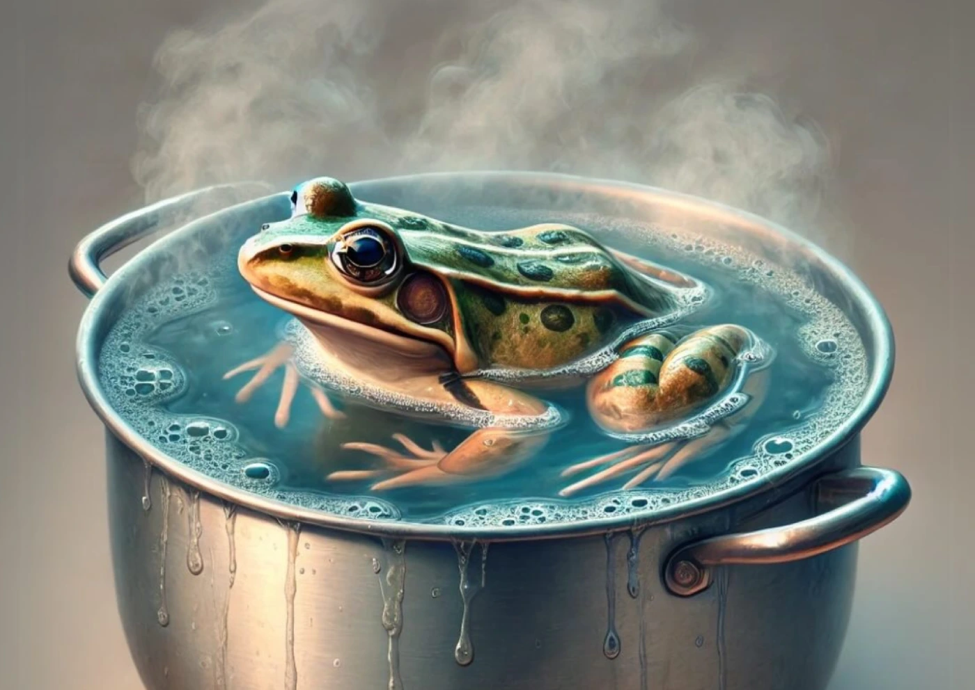 Se você colocar um sapo em água fervente, ele pula na hora. Mas, se aquecer a água aos poucos, ele não percebe o perigo e morre cozido.